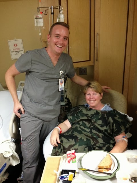 My friends gave me a camo hospital gown! LOVE IT! I wore it all over that place!